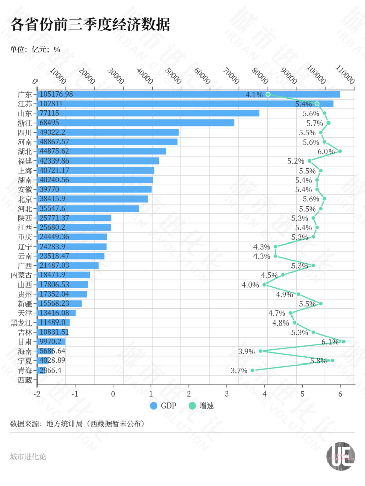 此前,两市一度“齐头并进”(2024全年GDP增速均为5.2%),但最新披露的今年前三季度数据,却透露出截然不同的发展态势: